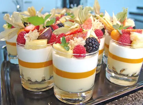 Jetzt einfach mal alle Zutaten in einem Glas schichten und gekühlt servieren.