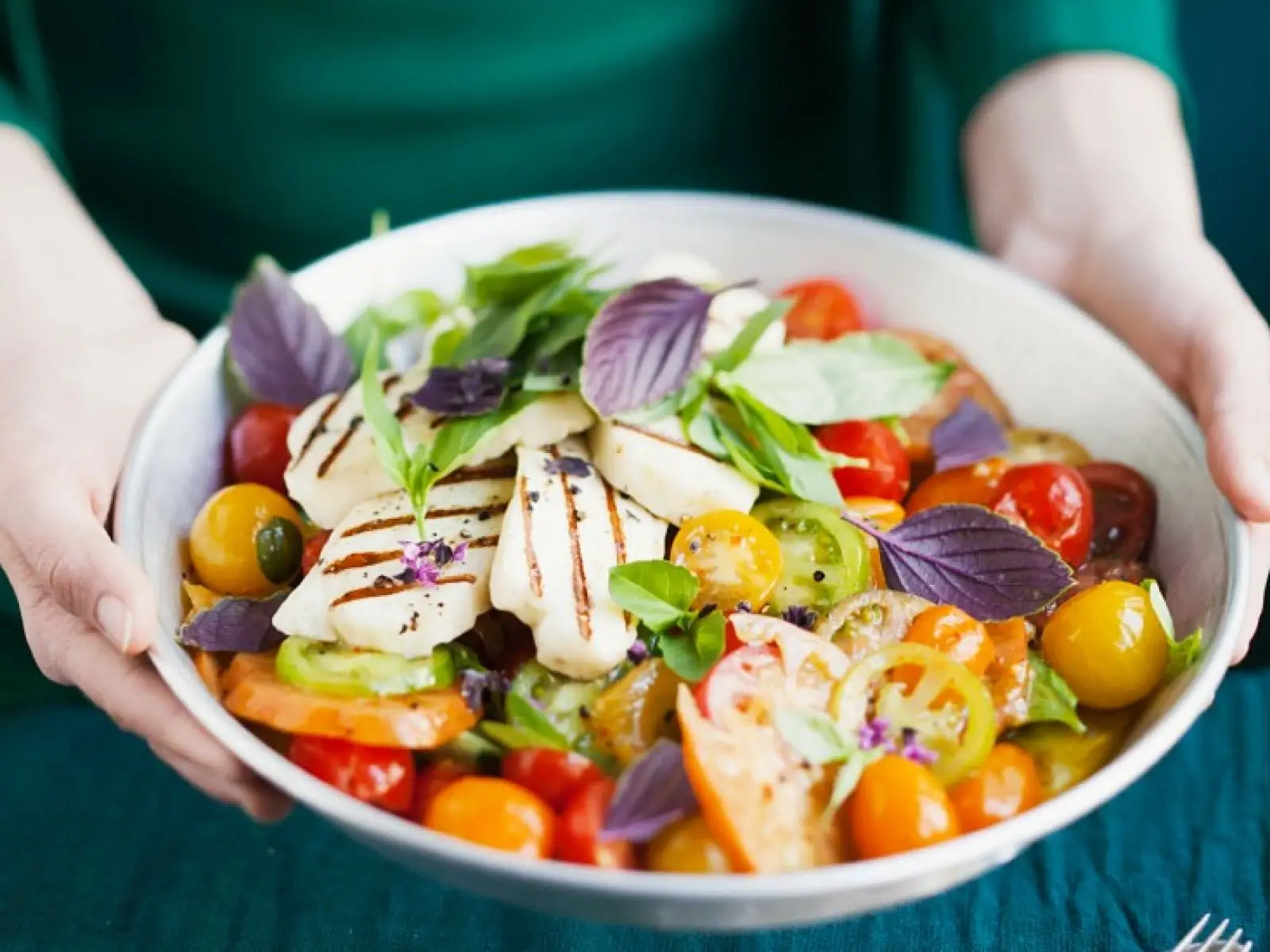 Kräuter und Joghurt mischen und über den Salat geben. Gut vermengen und abschmecken.