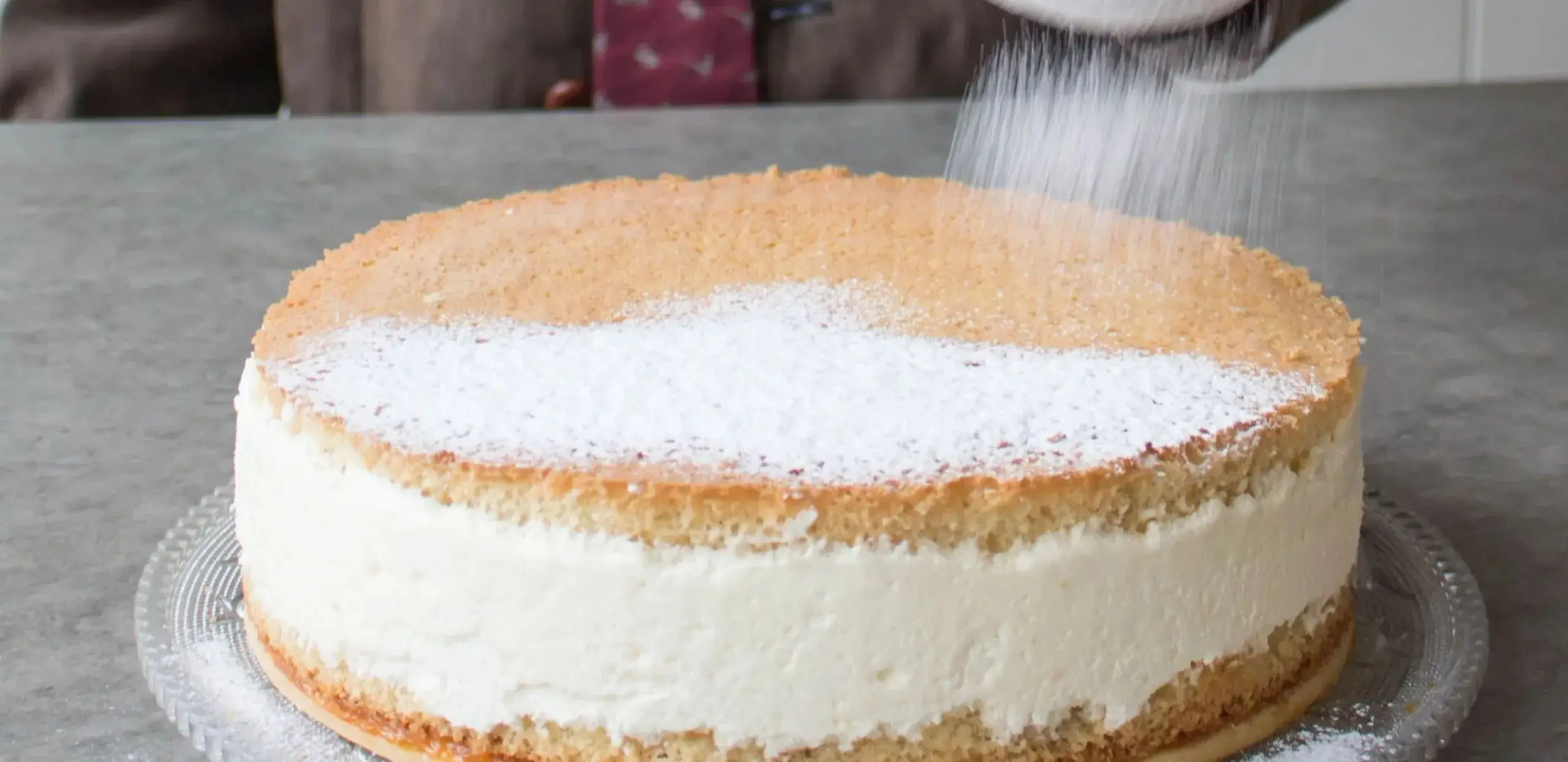 Um den ersten Tortenboden einen Ring bzw. den Springformrand legen und die Quark-Sahne-Creme daraufgeben und glattstreichen. Den zweiten Boden aufsetzen und über Nacht kalt stellen (der obere Boden kann mit einem Tortenteiler geteilt werden). Vor dem Servieren mit Puderzucker bestäuben.