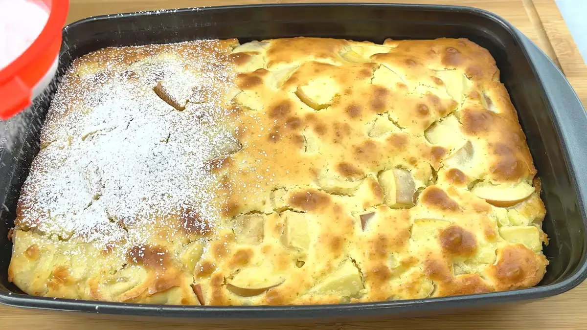 2. Die Äpfel fein schälen, in kleine Stücke schneiden und diese leicht in den Teig drücken. Den Kuchen bei 190° Grad 10 Minuten vorbacken.