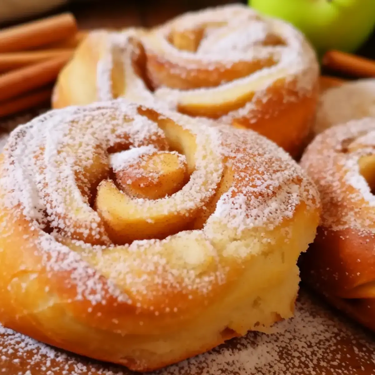 5. Zuletzt die Scheiben mit etwas Abstand, auf ein mit Backpapier ausgelegtes Backblech legen und ca. 15 bis 20 Minuten backen. Die Apfelschnecken sollten hinterher ganz auskühlen.