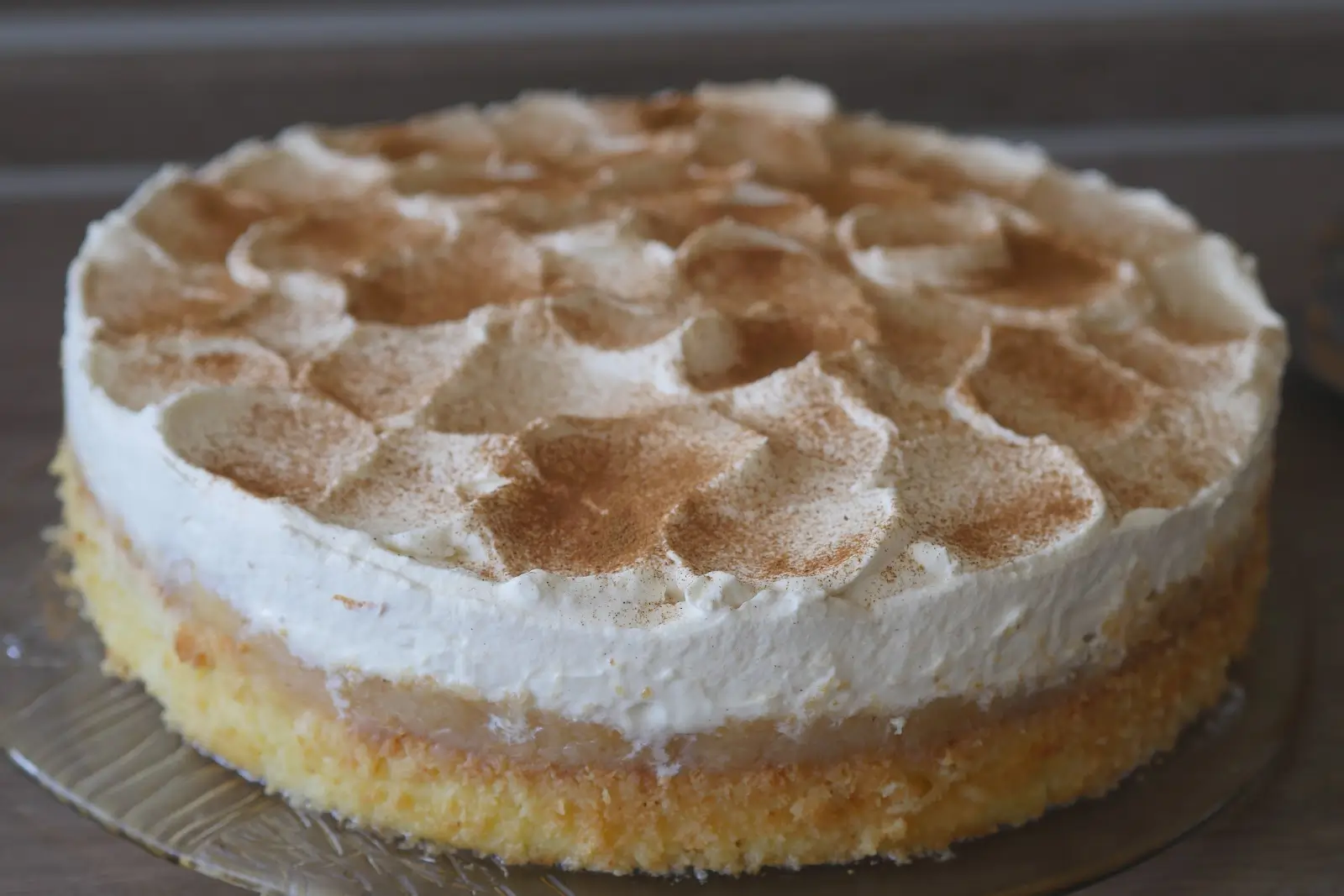 Milch mit Rum mischen, Biskotten eintunken und eine Form (Tortenform) oder rechteckige Form damit auslegen, dann Apfelmus darauf verteilen. Abwechselnd Biskotten, dann Apfelmus darauf geben bis die Form voll ist. Den Schluss sollen Biskotten bilden.