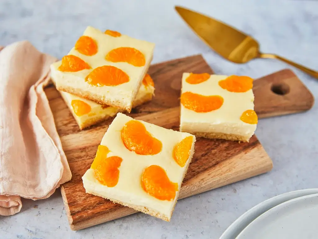 Für den Belag bis auf die Mandarinen alle Zutaten mischen und auf den Teig geben, die Mandarinen darauf verteilen. Entweder ordentlich in Reih und Glied oder einfach so.