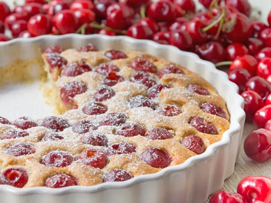 Den fertigen Kirschkuchen mit Staubzucker bestreuen und genießen.