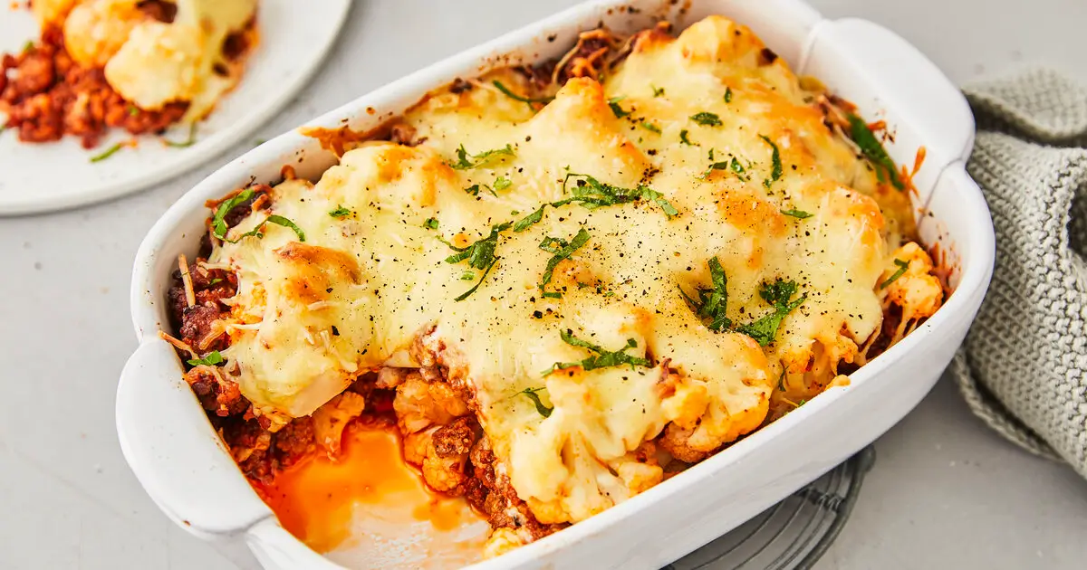 Blumenkohl bissfest kochen, Hackfleisch mit den Gewürzen, Ei, Senf und Zwiebeln vermengen, alles zusammen in eine Auflaufform geben.