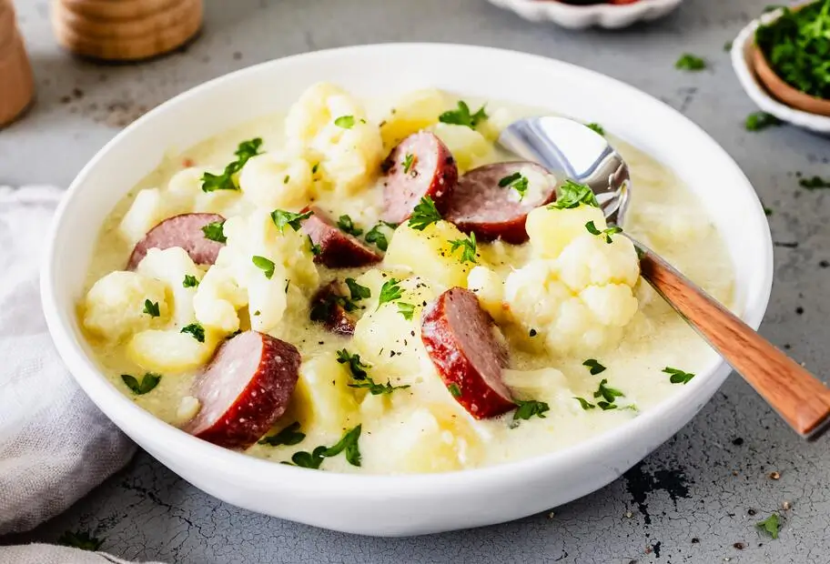 Das Hackfleisch in einem großen Topf in dem heißen Öl kräftig anbraten, die Zwiebeln hinzugeben und kurz mit braten, Chili und Paprikapulver unterrühren. Den Blumenkohl in mundgerechte Stücke zerkleinern und zusammen mit den Kartoffelwürfeln in den Topf geben. Mit so viel Wasser aufgießen, dass die Zutaten fast bedeckt sind. Mit Salz und Pfeffer würzen, bei geschlossenem Deckel etwa 20 Minuten köcheln lassen, bis das Gemüse weich ist. Den Schmelzkäse unterrühren und noch einmal mit Salz und Pfeffer abschmecken.