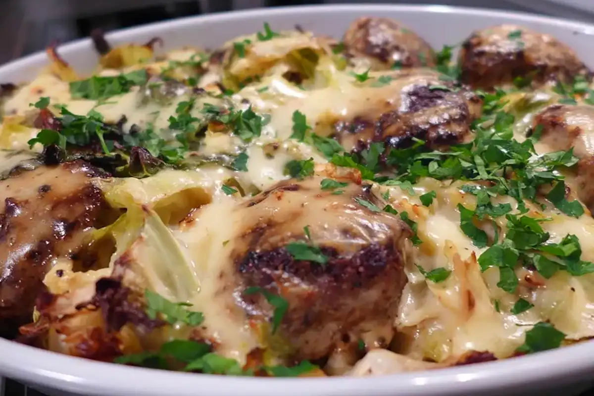 Buletten auf den Wirsing setzen, die Sauce darübergiessen, im vorgeheizten Ofen bei 200° 30 Min. zugedeckt (evtl. Alu) garen. Mit gehackter Petersilie bestreut servieren.