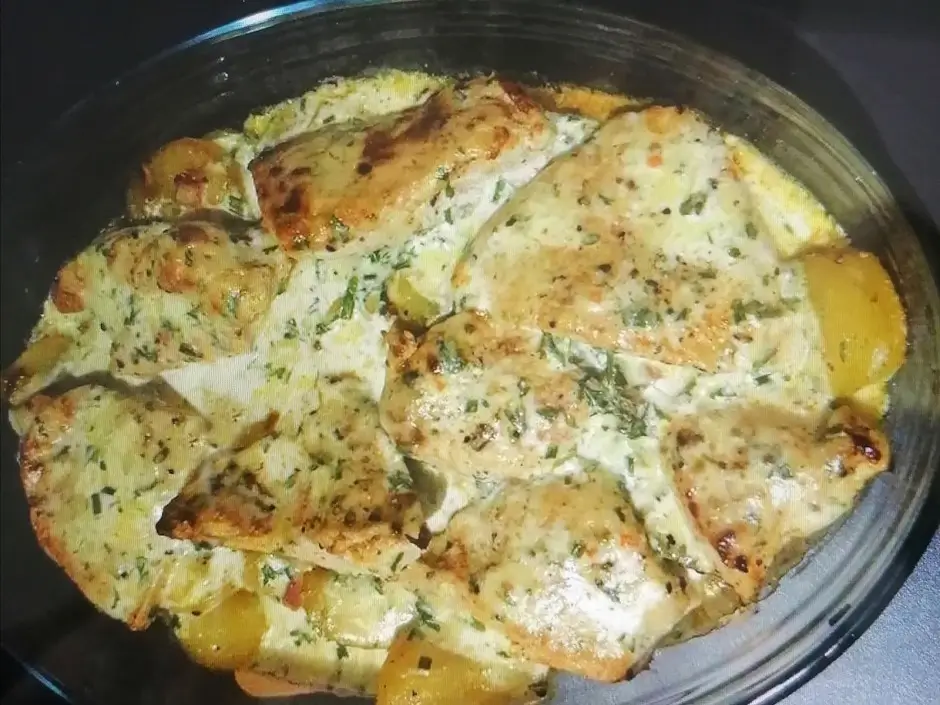 Die Schnitzel waschen, trocken tupfen, ggf. klopfen und in einer Auflaufform nebeneinander legen. Mit der Lauch-Creme-Mischung bedecken und alles bei 200°C (Umluft) ca. 30 Minuten backen.