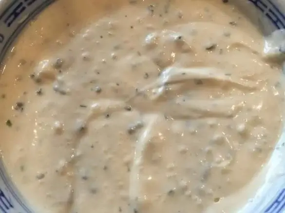 Ich mache oft etwas mehr von der Sauce, da ich den Rest gerne einfach so esse – man kann auch noch ein zerkleinertes Ei darunter mischen und als Brotaufstrich genießen.