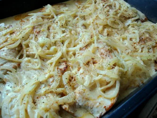 Schnitzel nach Hausfrauenart panieren und abbraten (nicht ganz gar, sonst nachher zu hart). Speck würfeln und anbraten, Zwiebeln dazu geben und glasig dünsten. Frische Champignons abbürsten und in 4-5 mm dicke Scheiben schneiden und mit andünsten, nicht matschig braten. Sahne hinzugeben. Mit Salz, Pfeffer, Oregano und Muskat abschmecken. Die Schnitzel in eine Auflaufform geben und mit der Sauce übergießen, mit Brühe ergänzen, bis die Schnitzel bedeckt sind. Im vorgeheizten Ofen auf 160°C ca. eine halbe Stunde garen lassen. Dazu passt Reis und ein frischer Blattsalat mit frischen Champignons.