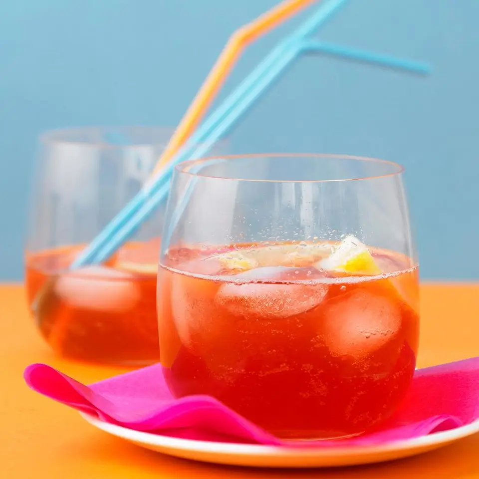 Vor dem Servieren die restlichen Erdbeeren putzen, waschen und vierteln oder in Scheiben schneiden. Erdbeerviertel mit Eiswürfel auf 6 Gläser (à 250 ml) verteilen und mit Eistee aufgießen. Mit Zitronenmelisse garnieren und servieren.