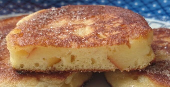 Die fertigen Obstpfannkuchen auf einen Teller legen und warm servieren. Sie können sie mit Ahornsirup, Puderzucker oder Joghurt garnieren.