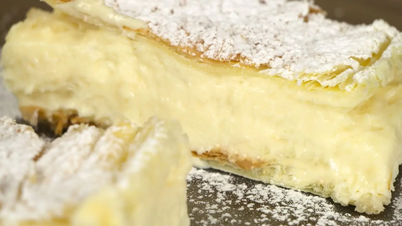 Die Puddingmasse auf den gebackenen und ausgekühlten Blätterteig geben. Auskühlen lassen, in den Kühlschrank stellen und fest werden lassen.