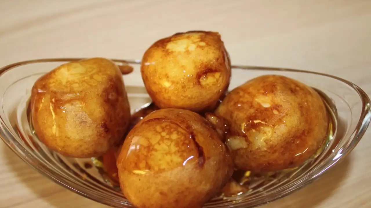 Anschließend kurz auf Küchenpapier abtropfen lassen, dann auf Teller und mit Honig beträufeln und genießen.