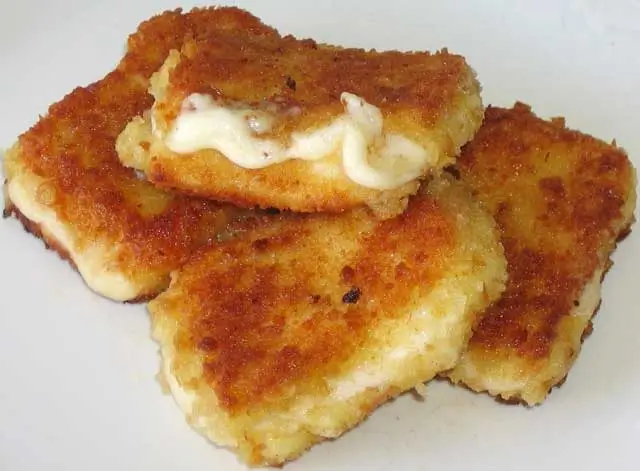 Den Feta in Scheiben schneiden und zunächst im Mehl wenden, dann durch das Ei ziehen und zuletzt von allen Seiten in den Semmelbröseln wenden. Etwas Olivenöl in einer (beschichteten) Pfanne erhitzen und den panierten Schafskäse von allen Seiten schön goldbraun anbraten.