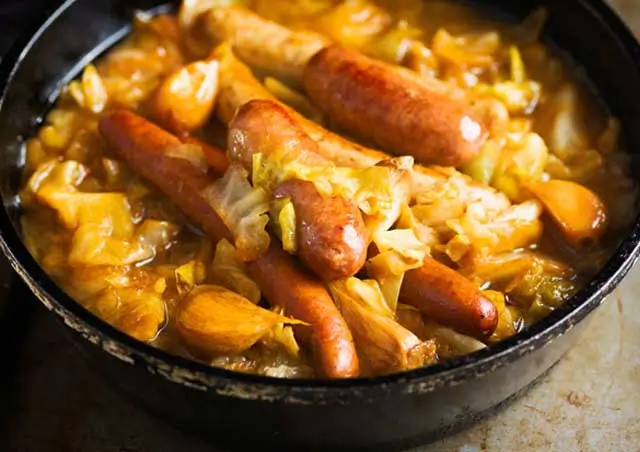 2. Danach wird etwas Öl in einer Pfanne erhitzt, der Kohl mit einer halben Tasse Wasser hinzugefügt und mit einem Deckel zugedeckt.