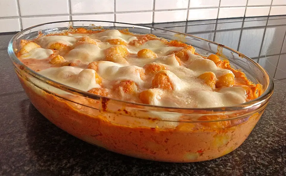 Im vorgeheizten Backofen bei 180°C ca. 15 Minuten überbacken. Sofort servieren.