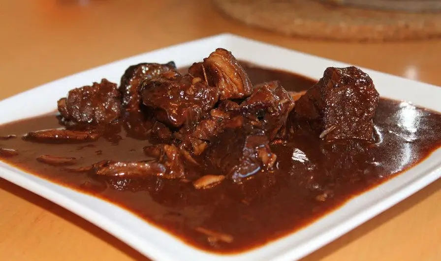 So beim zweiten Mal mit einem Schuss Rotwein und dann noch 1-3 mal mit selbstgemachter gemüsebrühe. Dann noch mal 3 Zwiebeln und schmoren lassen bei kleiner Flamme bis das Fleisch die gewünschte Zartheit hat.