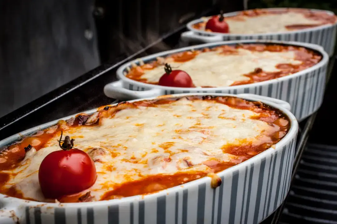 Jetzt die Fleischmischung in eine Auflaufform geben und mit Käse bestreuen. Im vorgeheizten Backofen bei 210 °C O/U ca. 20 Minuten überbacken, bis der Käse goldbraun ist. Dazu schmeckt Pommes oder Reis mit Salat.