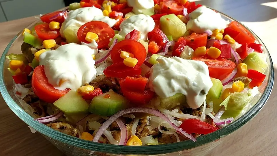 Den Schichtsalat ca. 1-2 Std. kühl stellen und vor dem Servieren miteinander vermischen. Fertig.