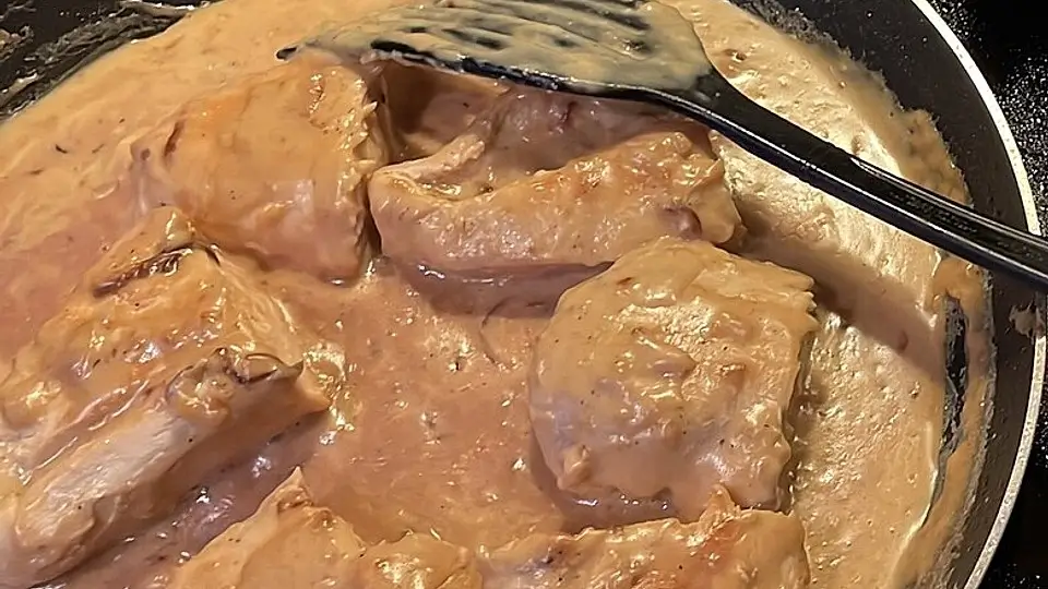Den Parmesan einrühren. Mit Salz und Pfeffer würzen. Das Hähnchenfleisch dazugeben und 2 Min. aufwärmen.