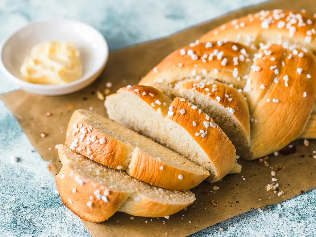 Mehl in eine Schüssel geben. Hefewürfel mit Zucker vermischen und stehen lassen, bis er sich aufgelöst hat. Hefezucker und Salz dazugeben. Butter im Topf zergehen lassen und Milch dazugeben.