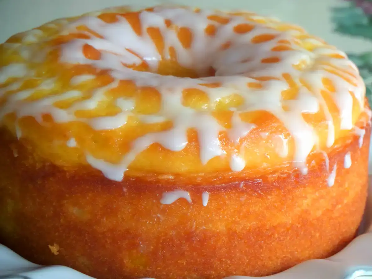 Den Gugelhupf auskühlen lassen, stürzen und mit Zitronenglasur und Haselnusskrokant überziehen.