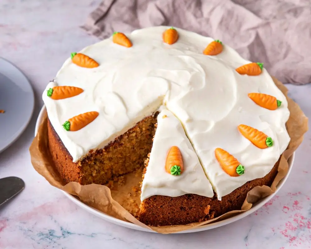 Eier, Zucker, Öl und Zimt mit dem Mixer verrühren. Die Karotten und Mandeln hinzugeben. Mehl und Backpulver mischen, ebenfalls unterrühren. Den Teig in eine gefettete Springform füllen, bei 180°C Umluft 40 Minuten backen.