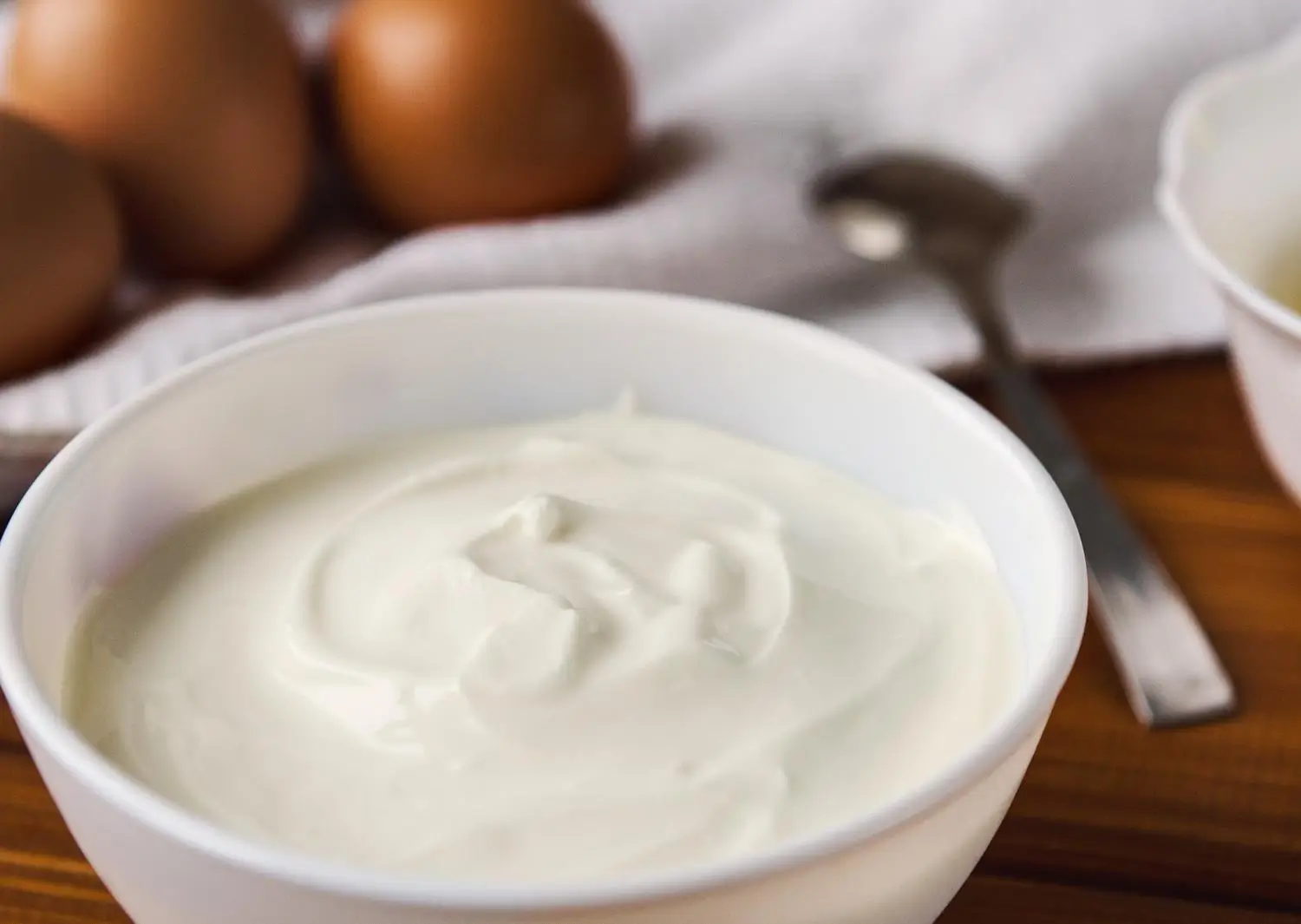 Zuerst das Ei trennen. Danach aus dem Eiweiß mit einer Prise Salz einen schönen festen Eischnee schlagen. Das Eigelb aufschlagen und dann mit dem Quark glatt rühren.