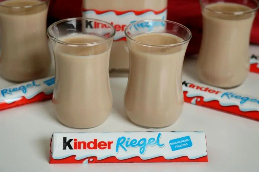Die Milch mit dem Zucker in einem Topf langsam erwärmen, dabei die Eier einrühren. Darf nicht zu heiß werden nur lauwarm werden lassen. Jetzt die Kinderschokolade in kleine Stücke brechen und in der Milch langsam schmelzen lassen. Dabei immer rühren. Wenn die Schokolade geschmolzen ist, die Sahne und den Wodka hinzufügen und 5min erwärmen.