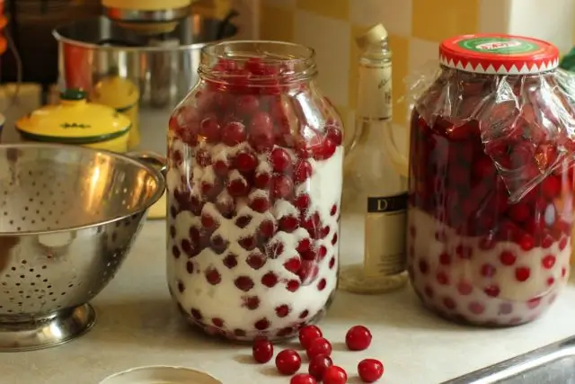 Nach ungefähr einem Monat die Kirschen entfernen und den Kirschlikör in eine andere Flasche umfüllen. Optional kann der Likör auch mit Kirschen serviert werden.