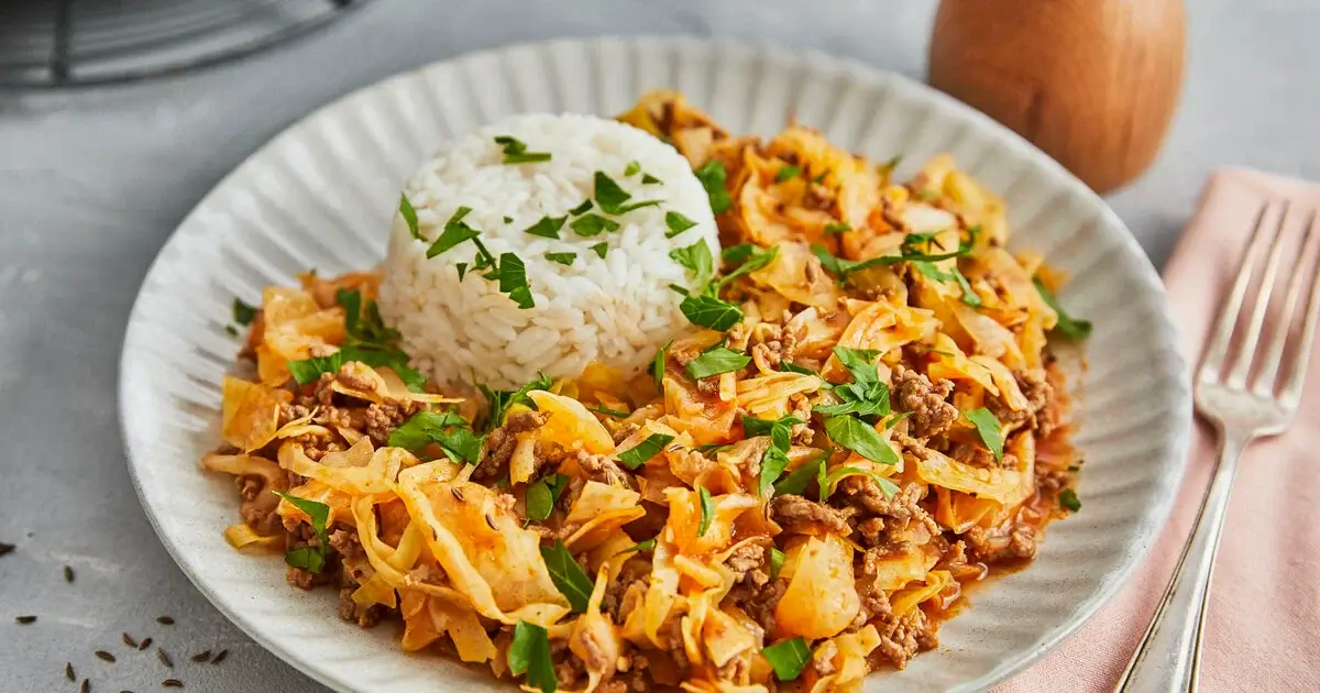 Tipp: Als Variante kann man auch gewürfelte rohe Kartoffeln dazu geben und als Eintopf kochen. Schmeckt wie Kohlrouladen, ist aber mit weniger Arbeit verbunden.