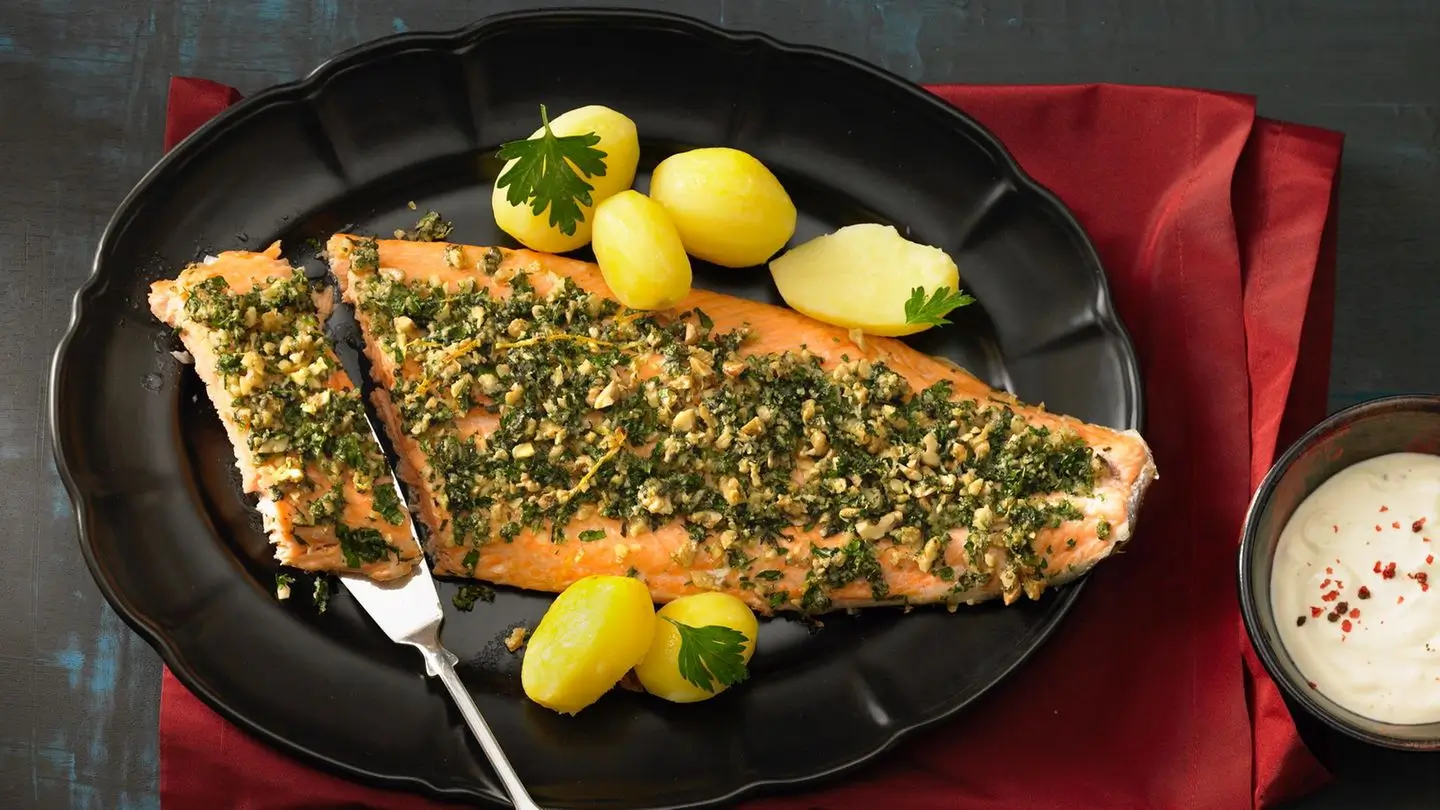Lachs mit Parmesan-Kräuter-Walnuss-Kruste ist ein Gericht, das Eleganz und Rustikalität perfekt miteinander verbindet. Diese Kombination macht es zu einem hervorragenden Rezept für besondere Anlässe sowie für ein gemütliches Abendessen zu Hause.