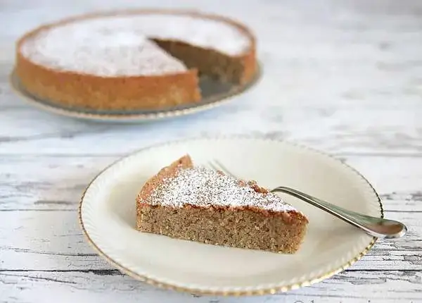 Wen er fertig ist den Kuchen stürzen und noch warm mit Puderzucker bestreuen.