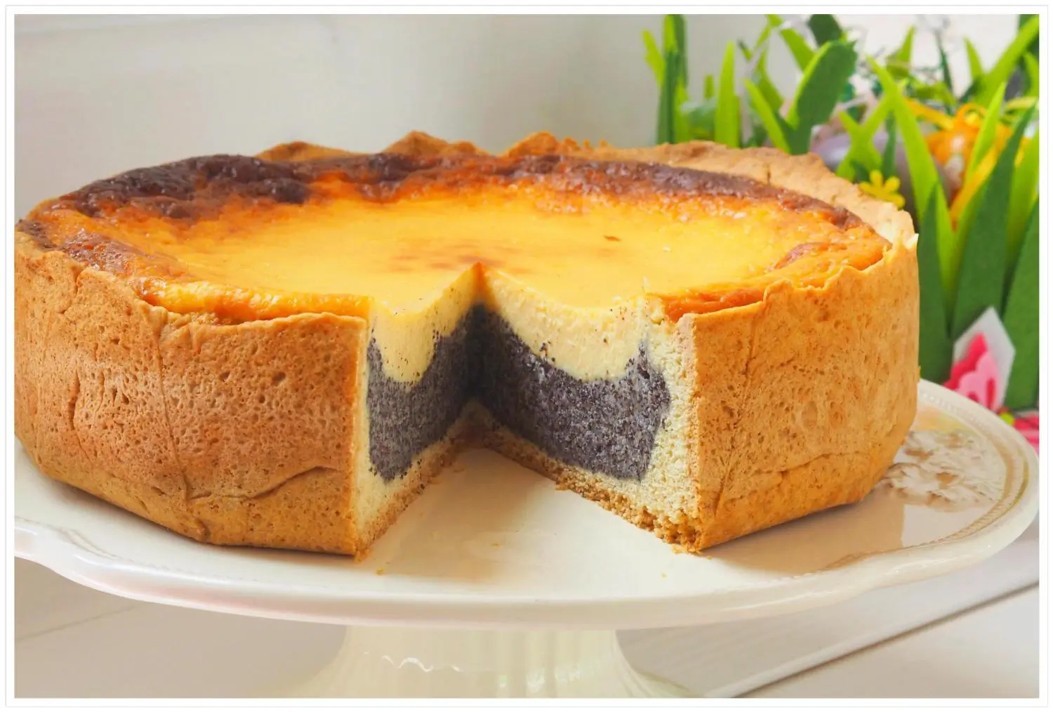 Jetzt die Milch, Mohn Zucker Grieß und Schmand verrühren und kurz aufkochen lassen, auf den Teig geben und im auf 190 °C Umluft vorgeheizten Backofen 30 bis 35 min. backen.