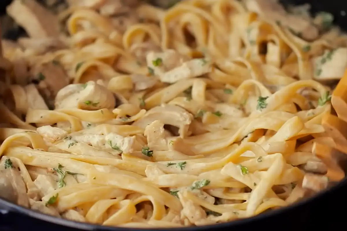 Nudeln mit Zarten Hähnchenbruststücken in Cremiger Käsesoße