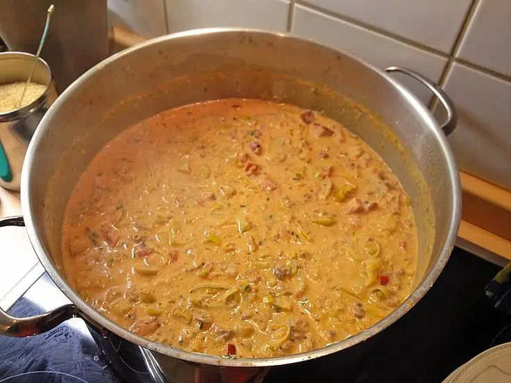 Anschließend die erwärmte Sahne unterrühren. Besonders gut schmeckt die Suppe, wenn sie über Nacht durchzieht.