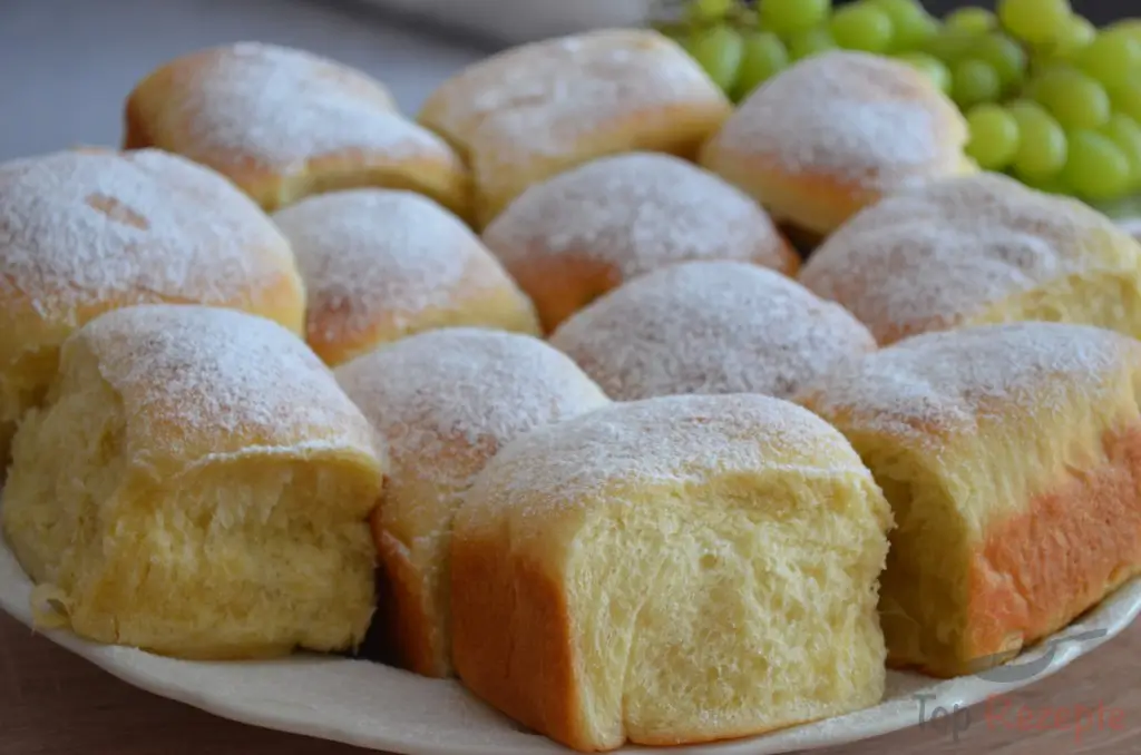Als erstes das Mehl und Salz vermengen. In die Mitte eine Mulde drücken. In die Mulde die Hefe hineinbröseln und etwas Zucker und Milch dazugeben. Jetzt mit etwas Mehl vermengen und 15 Minuten aufgehen lassen.