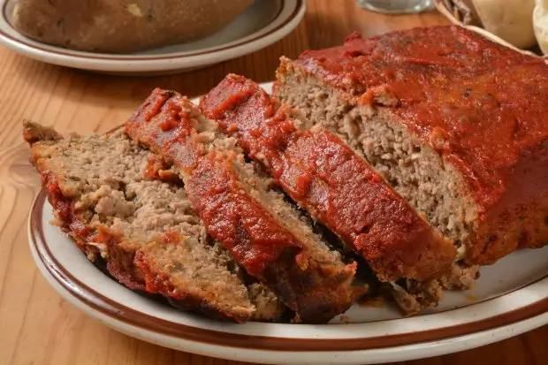 Paprika-Feta-Hackbraten aus dem Backofen mit Tomatensauce