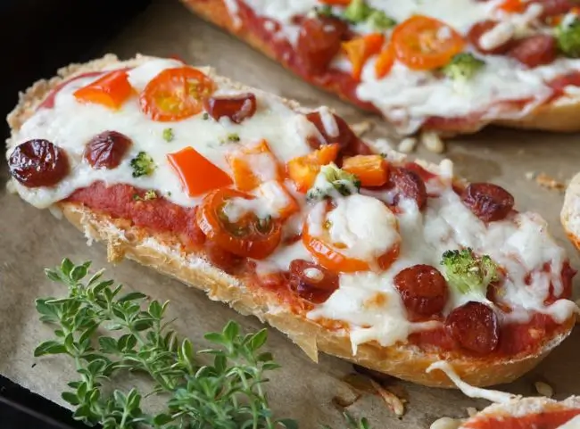 Währenddessen die Paprikas, den restlichen Gouda und die Tomaten in Scheiben schneiden, nach 12 Minuten auf die Baguettes legen und nochmal kurz (ca. 5 Minuten) überbacken.