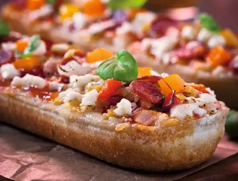 Währenddessen die Paprikas, den restlichen Gouda und die Tomaten in Scheiben schneiden, nach 12 Minuten auf die Baguettes legen und nochmal kurz (ca. 5 Minuten) überbacken.