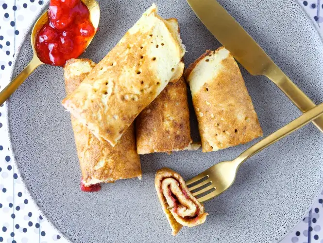 Die Pfanne mit ein wenig Öl bestreichen, Teig darauf geben und dünne Pfannkuchen herstellen. Diese anschließend mit Marmelade, Nutella, Schokolade, Quark, Mohn, Nüssen oder anderen Zutaten füllen.