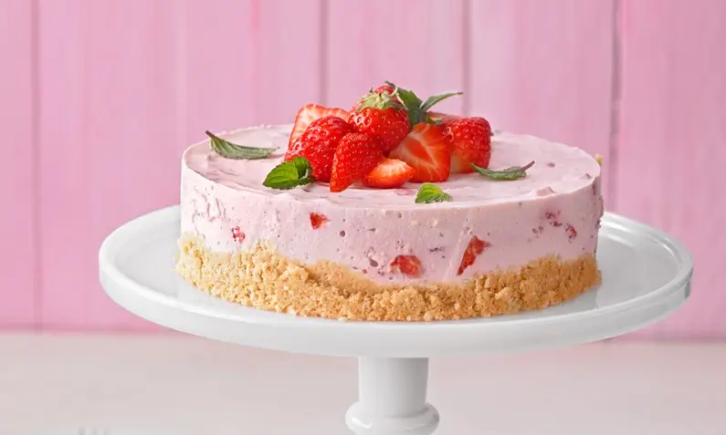 Die Creme auf den Tortenboden geben und im Kühlschrank oder Gefrierfach fest werden lassen.