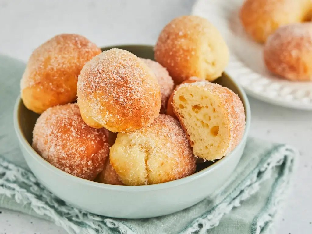Jetzt die Quarkbällchen goldbraun backen und im Anschluss für kurze Zeit auf einem Küchentuch von überschüssigem Fett befreien. Die noch warmen Bällchen in Zucker wälzen und servieren.