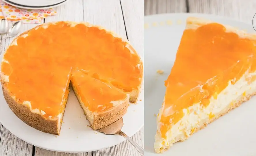 In den Gefrierschrank stellen (oder über eine etwas längere Zeit in den Kühlschrank) und fest werden lassen. Wenn die Masse fest geworden ist, wird sie mit Pfirsich-Scheiben belegt. Tortenguss entweder mit Wasser oder mit dem mit Wasser verdünnten Pfirsichsirup oder -saft zubereiten und auf dem Kuchen verteilen.