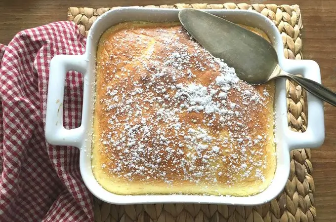 Zucker mit Eiweiß steif schlagen. Eigelb vorsichtig darunter rühren und auch die restlichen Zutaten hinzufügen. Anschließend die Masse in eine vorbereitete Auflaufform gießen.