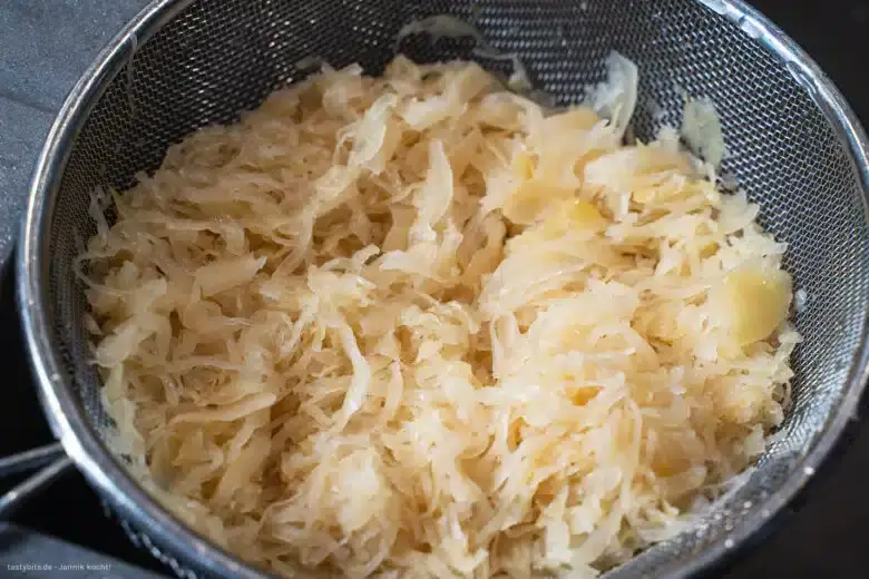 Am besten schmeckt das Sauerkraut, wenn man es am Vortag kocht und langsam wieder aufwärmt. Außerdem kann man es so gekocht sehr gut einfrieren.