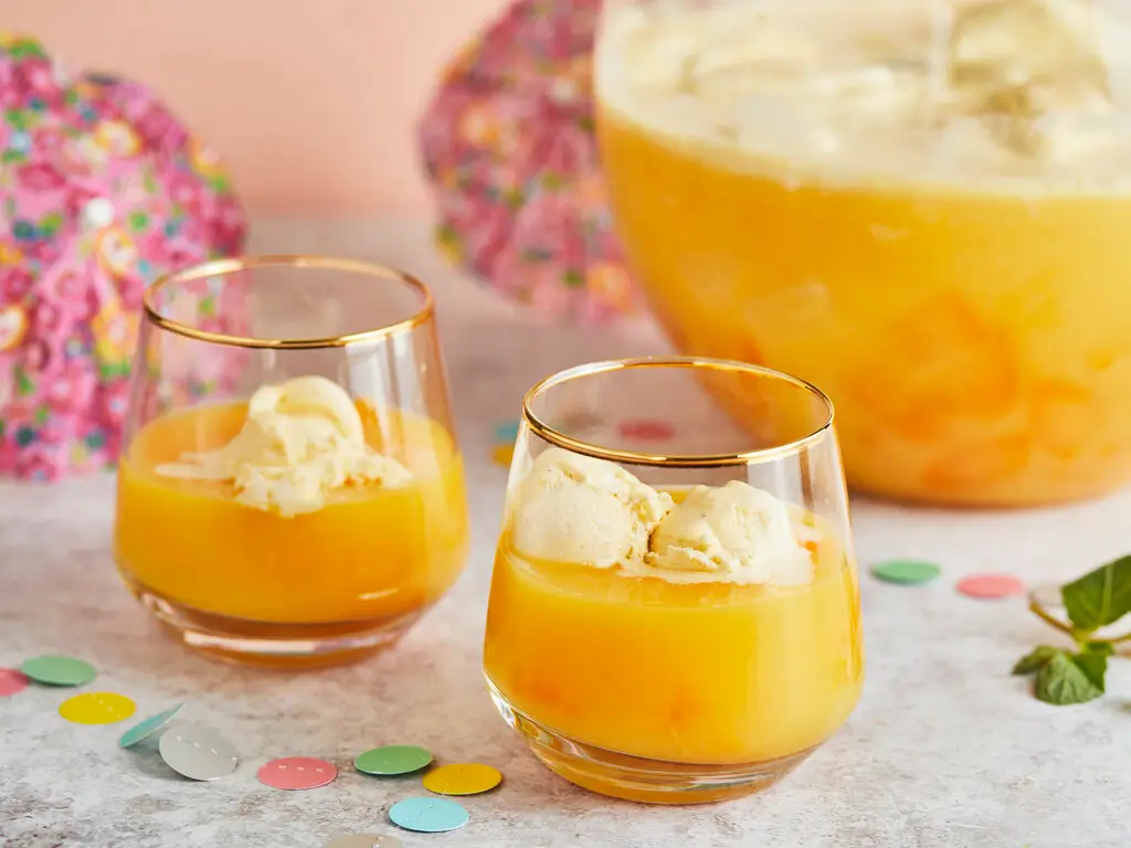 Am nächsten Tag den Saft, den restlichen Wein und das Eis dazu geben. Ständig umrühren damit sich das Eis schön verteilt.