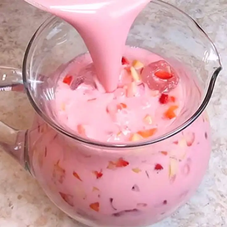 Sahne, Kokossirup, Likör und Kirschsaft im Mixer gut vermischen. Crushed Ice unterrühren.
