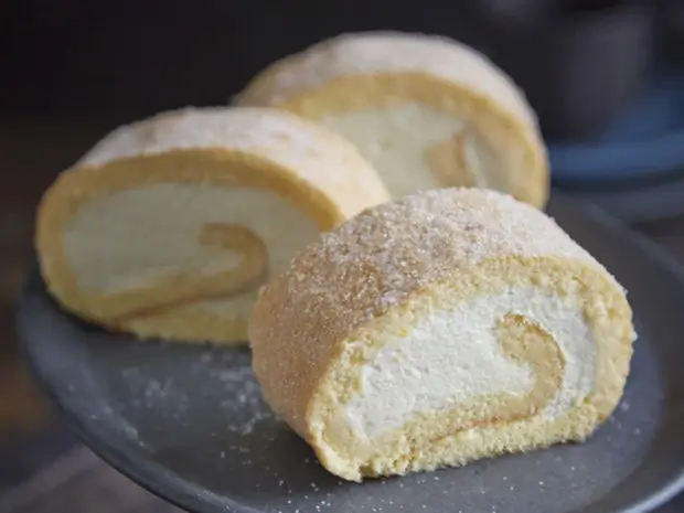 Den Teig nach dem backen noch warm zusammenrollen und dann auskühlen lassen. Anschließend wieder aufrollen, mit der Creme bestreichen, wieder zusammenrollen und dabei das Backpapier abziehen. Die fertige Rolle mindestens eine Stunde im Kühlschrank fest werden lassen.